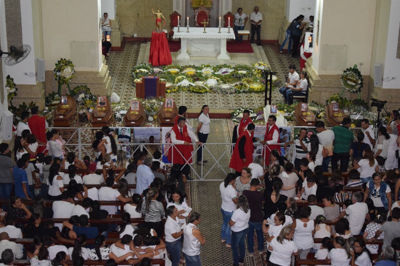 Ao término da missa, os corpos foram colocados em dois carros do Corpo de Bombeiros que seguiram no cortejo até o Cemitério Frei Damião de Bozzano, onde já na madrugada desta quarta-feira (17) foram sepultados sob grande comoção.