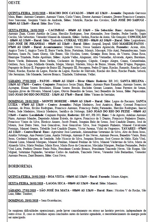 ATENÇÃO SERTÃO, ATENÇÃO PB: Energisa alerta sobre o desligamento programado para este final de semana