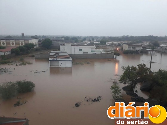 Algumas ruas da cidade sertaneja ficaram alagadas, causando transtornos e prejuízos à população.