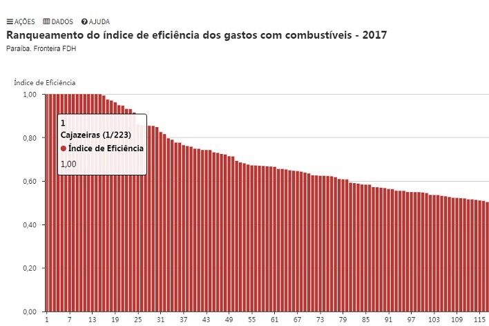Ao final dos doze meses de 2017, Cajazeiras conseguiu a nota máxima 1,00. Os gastos com combustíveis totalizaram a quantia de R$ 1,23 milhão, o que representa uma economia de R$ 350.000,00 (trezentos e cinquenta mil reais), já que em 2016 foi gasto R$ 1,59 milhão. Além de Cajazeiras, mais 14 municípios atingiram nota máxima.