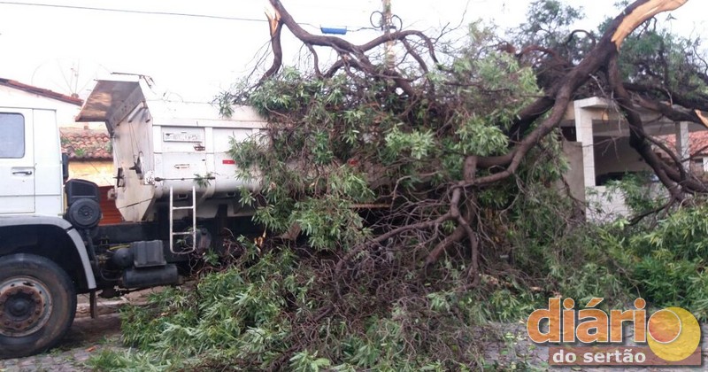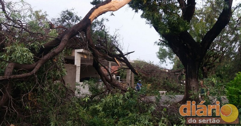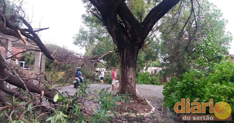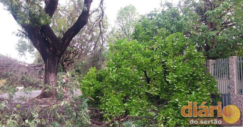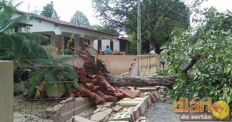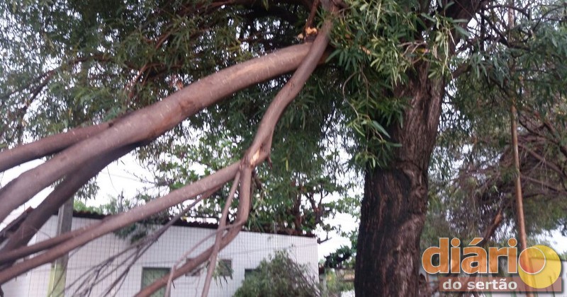 Muitas casas da Rua 16 e Avenida Rio Piranhas ficaram prejudicas com a queda das árvores, pois os galhos caíram em cima das residências.