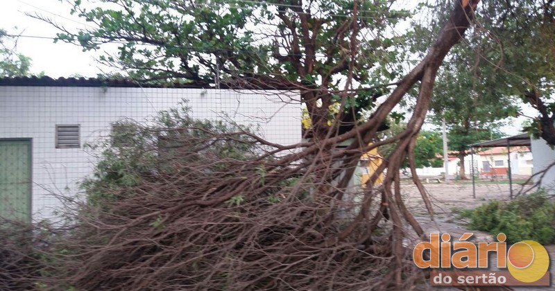 Vendaval derruba árvores, causa prejuízo e deixa alunos sem aula em Sousa, Sertão da Paraíba