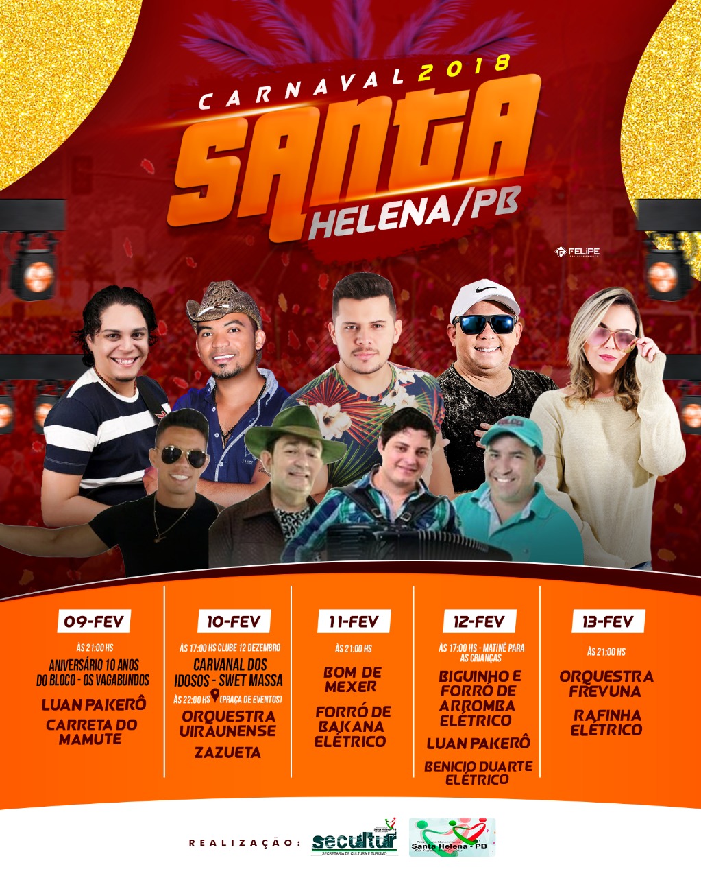 O carnaval de Santa Helena vai de 09 a 13 de fevereiro com as seguintes atrações: