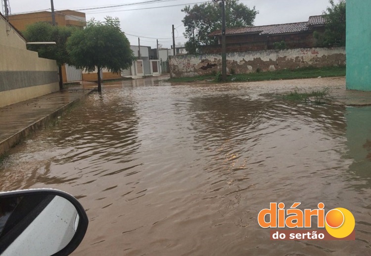 Chuva alagou ruas na cidade de Sousa (foto: Charley Garrido)