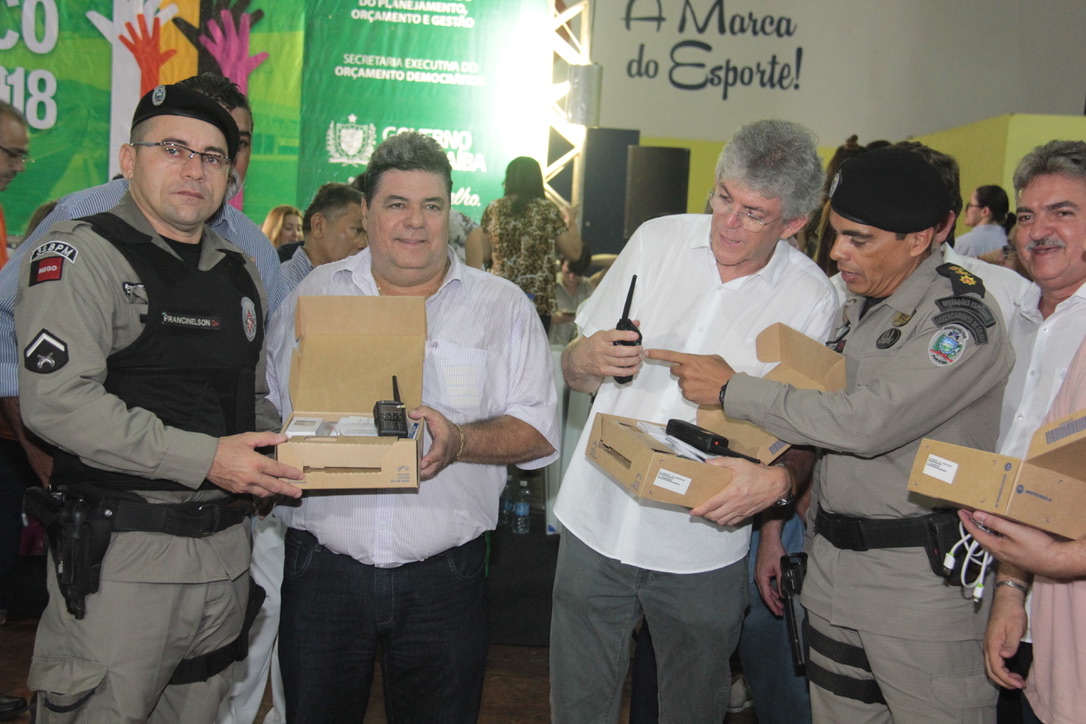 O governador Ricardo Coutinho participou, na noite desta sexta-feira (9), na cidade de Patos, sede da 6ª Região Geoadministrativa do Estado, da sexta audiência pública do Orçamento Democrático Estadual – Ciclo 2018. No ginásio ‘O Gelão’, o governador assinou decreto e ordem de serviço, respectivamente, criando delegacia especializada e o condomínio Cidade Madura de Patos, além de efetuar a entrega de kits escolares e de robótica para a rede estadual de ensino e créditos aos microempreendedores da região.