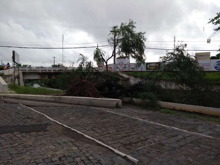 Depois da maior chuva do ano em Cajazeiras, Sertão da Paraíba, onde registrou 60.5 milímetros na madrugada desta terça-feira (10), uma das árvores mais antigas da cidade veio a cair.