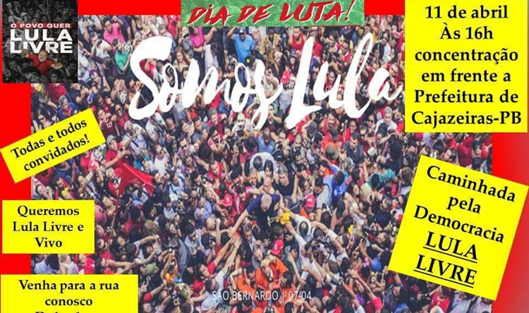 A Frente Brasil Popular do Sertão convida a todas as pessoas de Cajazeiras e cidades vizinhas para Ato Público #LULALIVRE