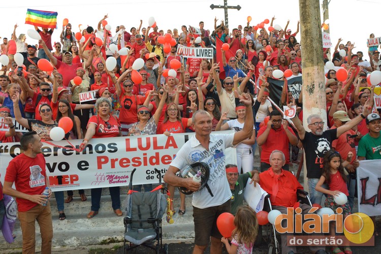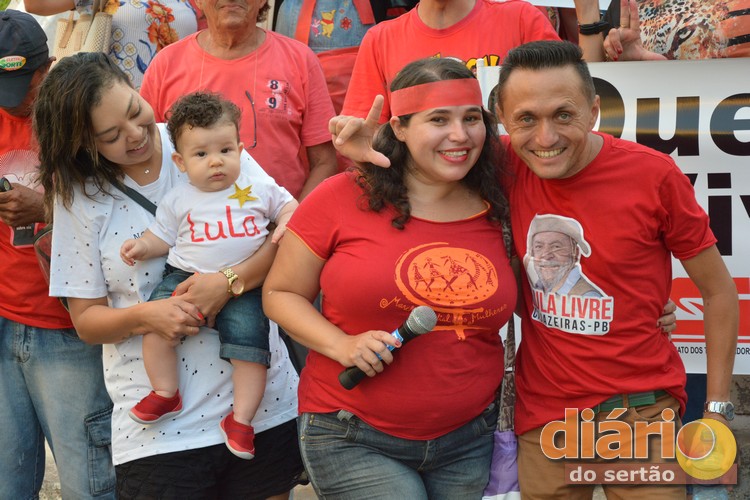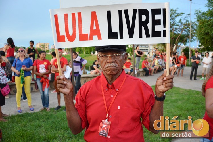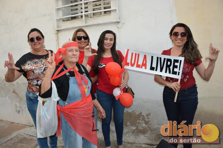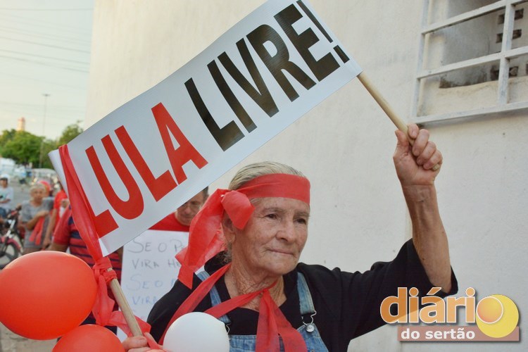 Manifestantes pró-Lula realizaram nesta quarta-feira (11), em Cajazeiras, uma manifestação em favor do ex-presidente que está preso em Curitiba.
