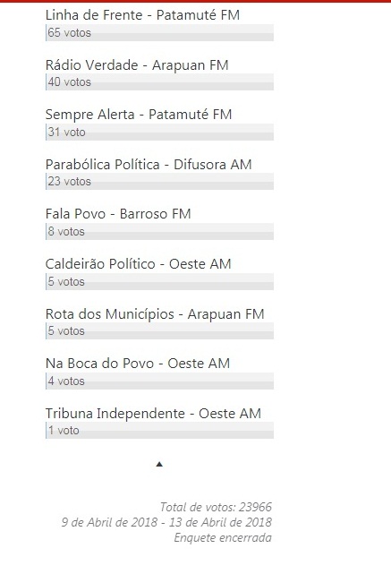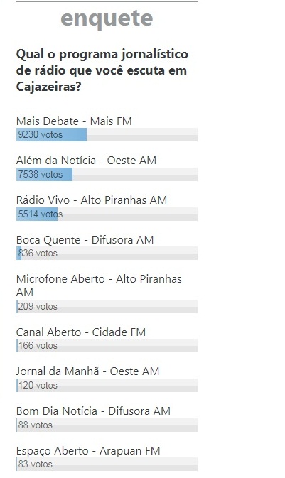 A enquete foi iniciada em 9 de abril e os internauta tinham 17 opções incluindo todas as rádios da cidade de Cajazeiras.