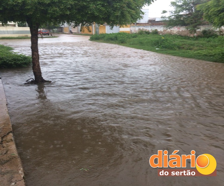 Choveu bastante durante a manhã desta sexta-feira na cidade de Sousa, e deixou várias ruas e avenidas completamente alagadas, animando a população.