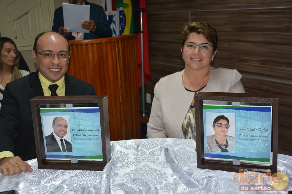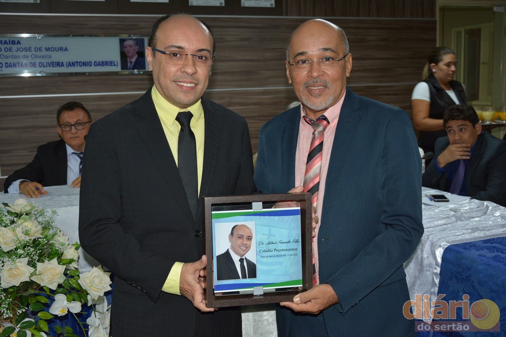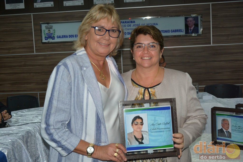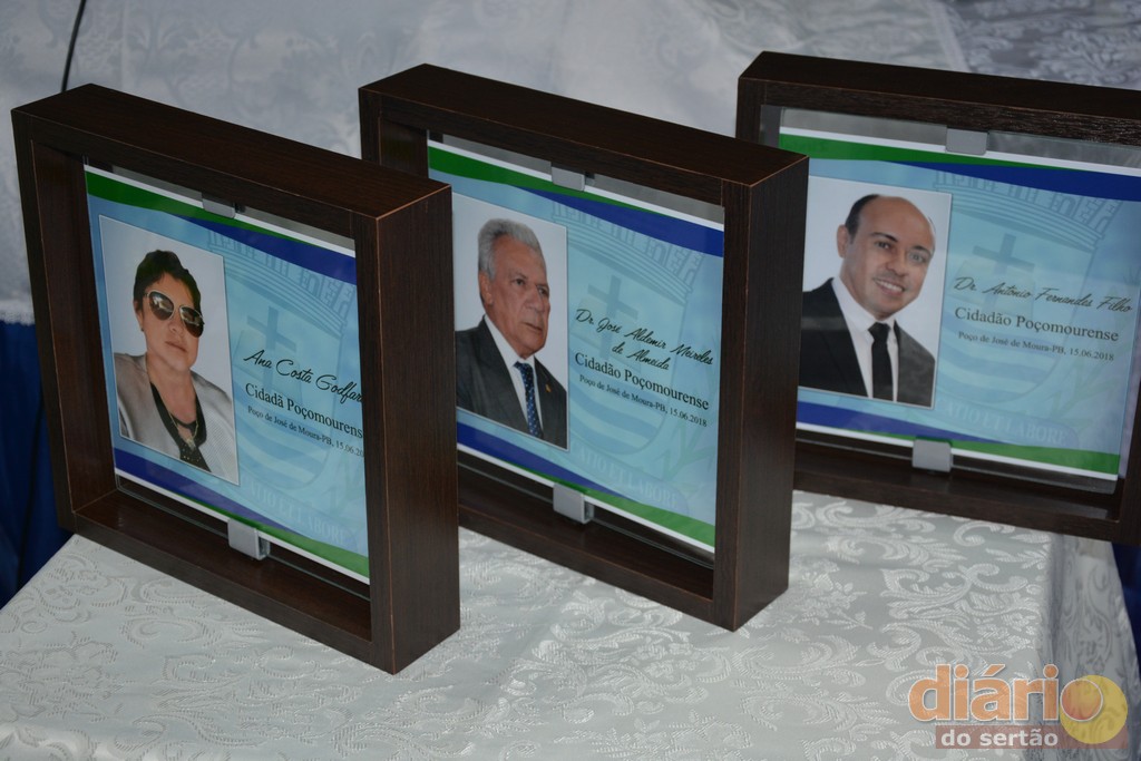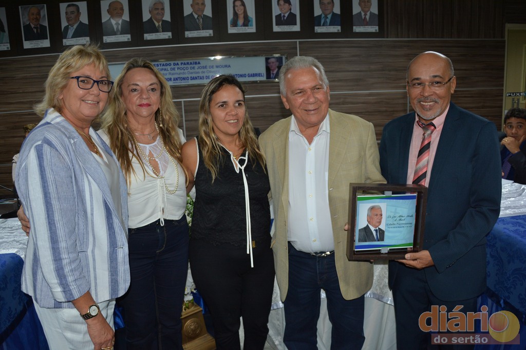 A Câmara Municipal da cidade de Poço José de Moura concedeu nesta sexta-feira (15), em sessão solene títulos de cidadã e cidadãos poçomourense a três personalidade influentes da região de Cajazeiras, Ana Goldfarb diretora de uma das maiores instituições de ensino do nordeste, a Faculdade Santa Maria; Dr. Antônio Fernandes diretor do campus da UFCG de Cajazeiras e ao ex-deputado Estadual e atual prefeito de Cajazeiras, o médico, José Aldemir.