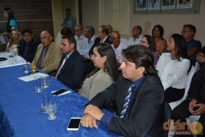 Dezenas de colaboradores da Faculdade Santa Maria lotaram o auditório da Câmara para prestigiar a homenagem do Poder Legislativo a empreendedora Ana Goldfarb.