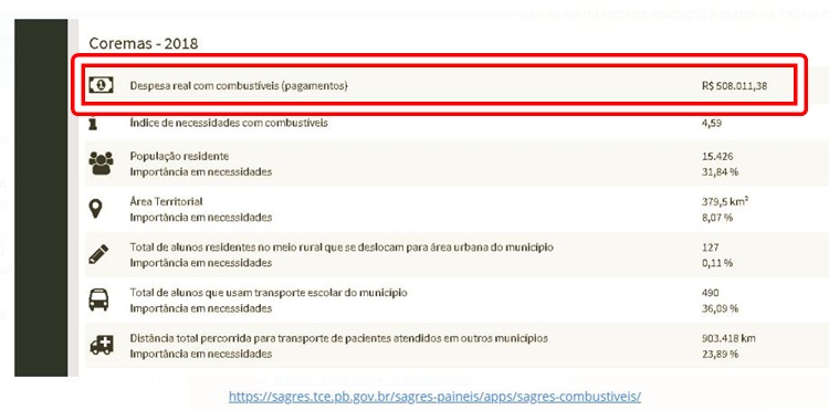 Os gastos chamaram a atenção e revolta da imprensa paraibana, onde uma cidade do sertão com pouco mais de 15 mil habitantes, tenha um gasto desse tamanho, apenas com combustível, ficando assim entre as 10 mais de todo o estado a gastar excessivamente com combustível.