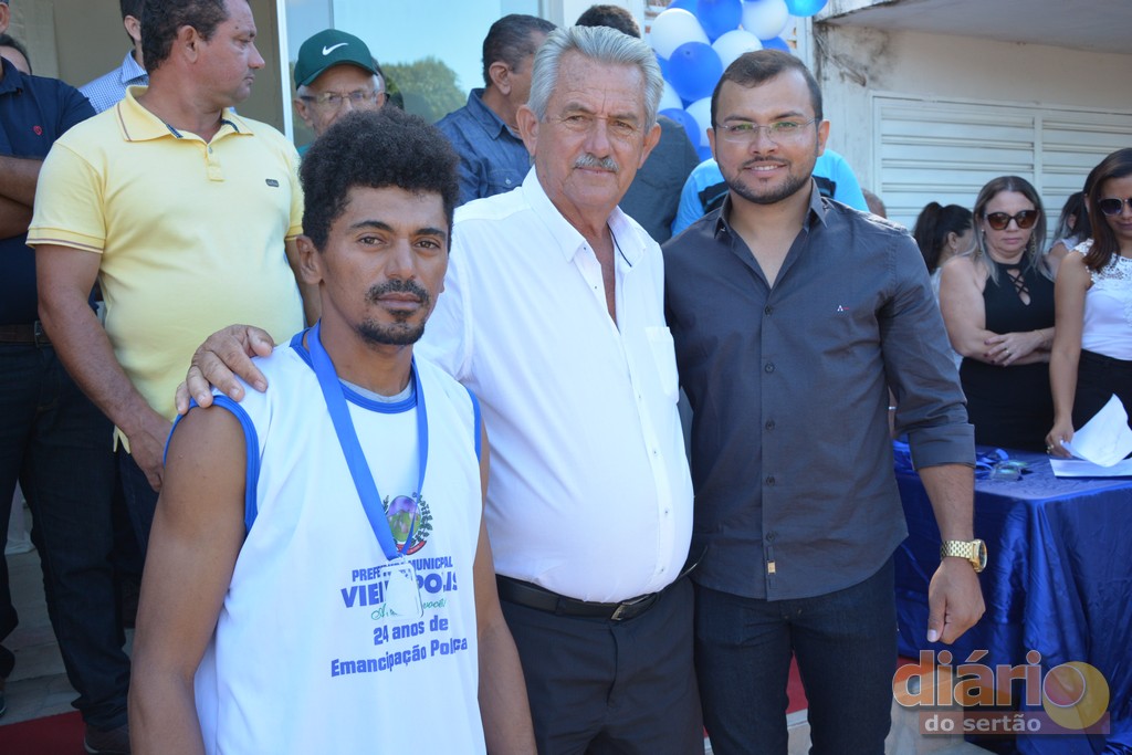 Em seguida, dezenas de competidores da 5ª Maratona de Vieirópolis, promovida pela Prefeitura, receberam medalhas e prêmios em dinheiro como valorização do esporte amador da cidade.