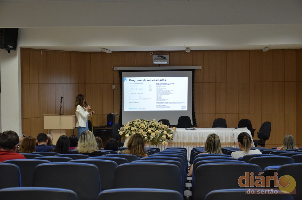 No auditório da UFCG de Cajazeiras foi realizada, nesta quarta-feira (15), a reunião que apresentou aos prefeitos e secretários de todo o Sertão paraibano o projeto arquitetônico do Hospital Universitário do Sertão, que para ser construído precisa do empenho de toda a bancada federal paraibana na destinação de emendas. A reunião foi proposta pelo Comitê Pró-HU e contou com presenças de lideranças políticas de toda a região.