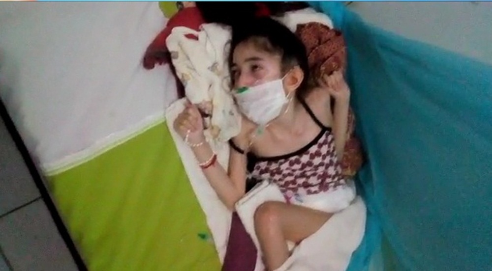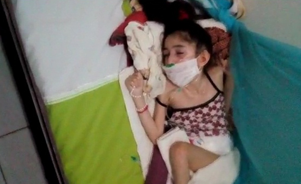 A menina de 14 anos respira com ajuda do balão de oxigênio, se alimenta por sonda e toma medicação muito cara.