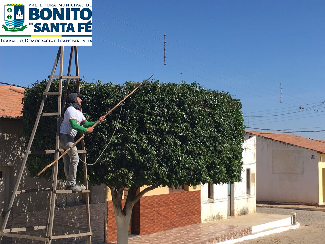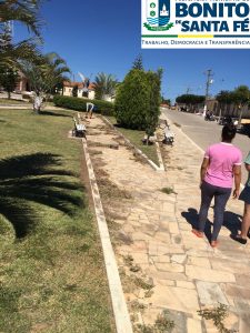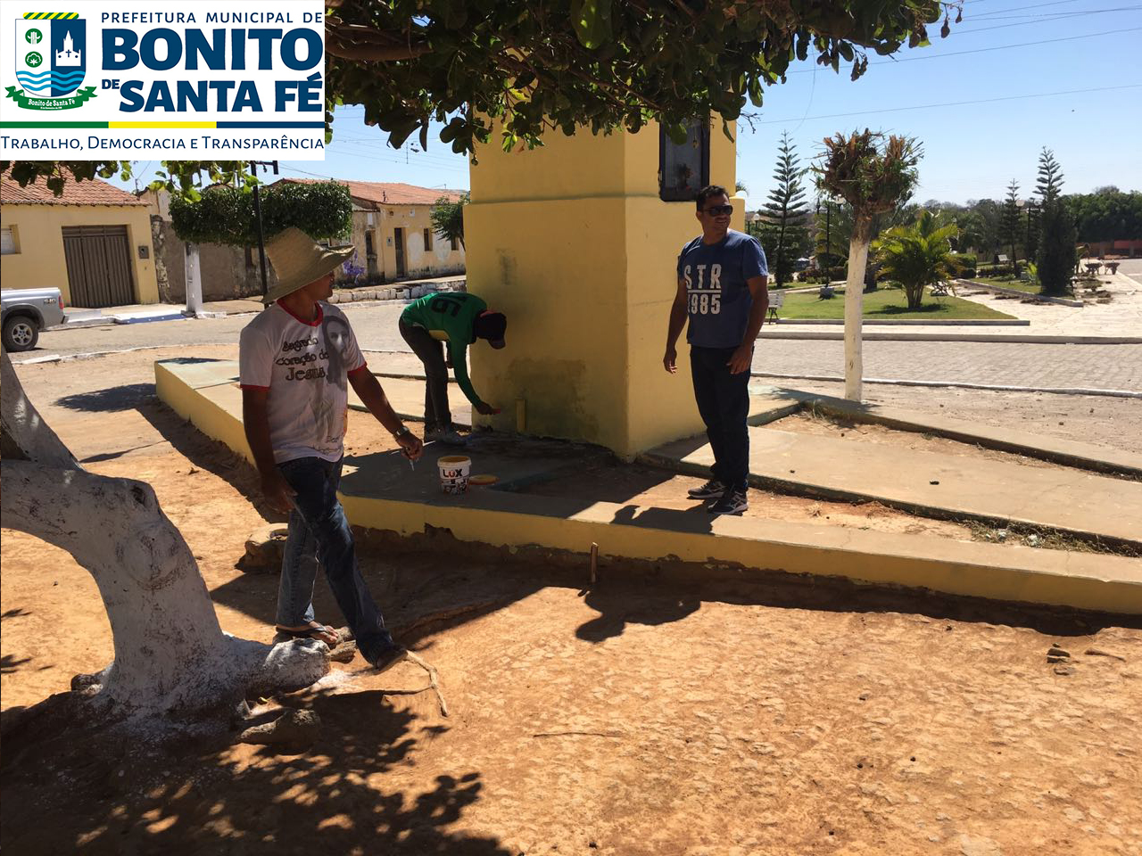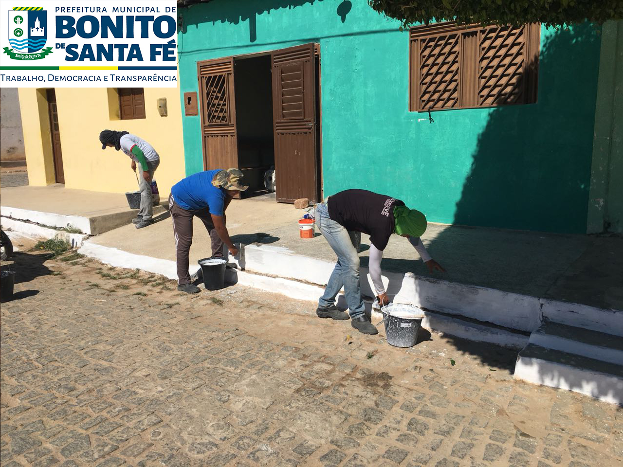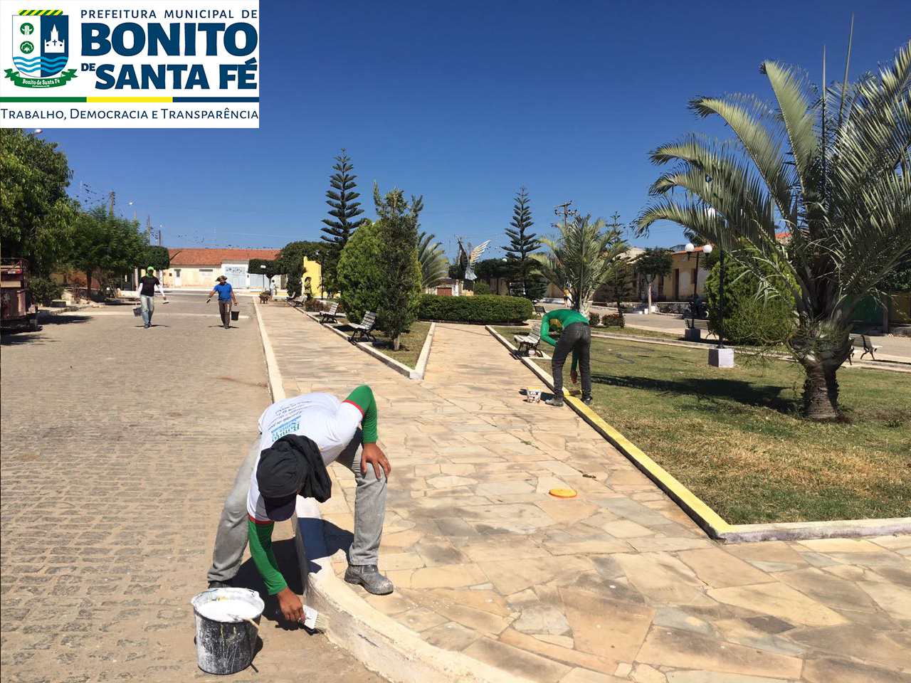 Uma equipe com cerca de 14 pessoas está nas ruas realizado serviços de poda de árvores, pinturas no meio-fio, reparos nas ruas de calçamento e melhorias nas ruas ainda não calçadas, pintura e jardinagem nas praças.