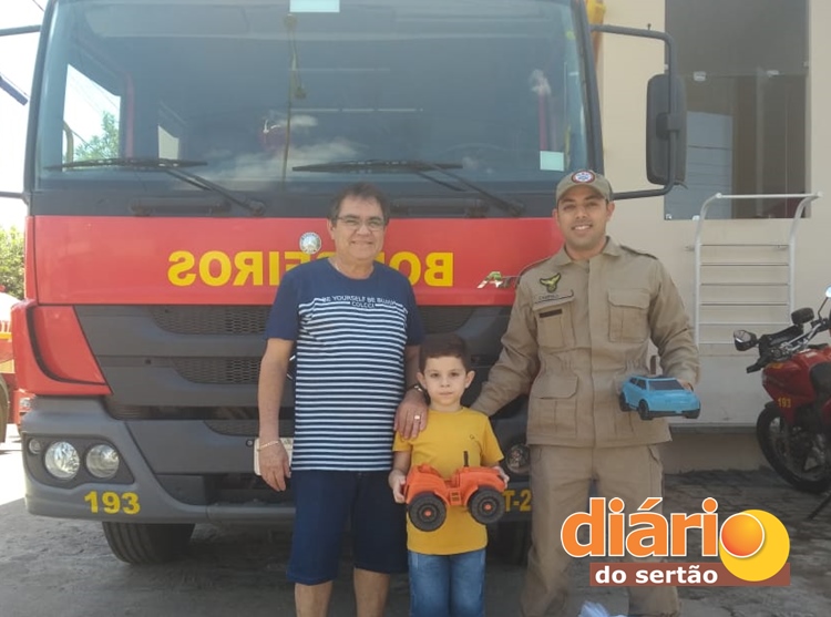 O garotinho José Francisco Linhares, de apenas 6 anos, foi até a unidade do Corpo de Bombeiros, acompanhado de seus pais para entregar uma parte de seus brinquedos, para que fossem doados para crianças carentes.