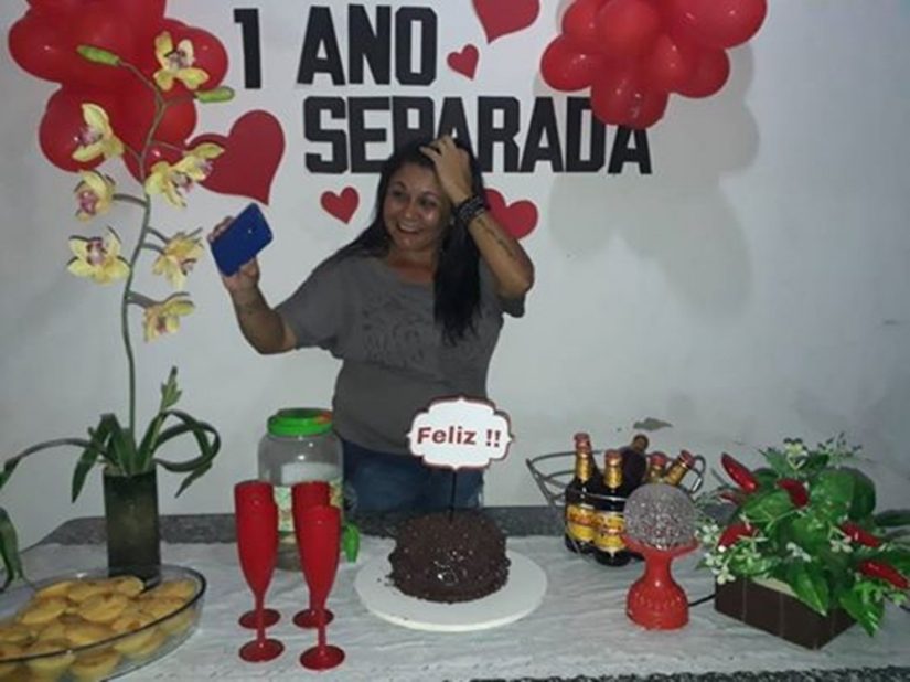 A dona de casa Cristiane Nunes, moradora da cidade de São João do Rio do Peixe, usou sua rede social para postar foto de uma festa que fez para comemorar um ano de separação.