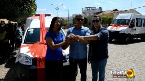 Em seguida, foi o momento mais aguardado da cerimônia. O prefeito Chico Pereira, a primeira-dama Vilma Silva e o secretário de Saúde do município, Andson Barbosa, entregaram à população três veículos novos destinados à Secretaria de Saúde. São duas ambulâncias e um miniônibus moderno, com 19 lugares e poltrona elétrica para cadeirantes e idosos.