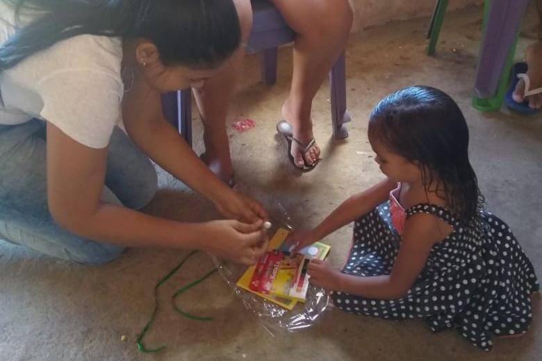 Visitadoras e familiares realizam atividades lúdicas e educativas com as crianças