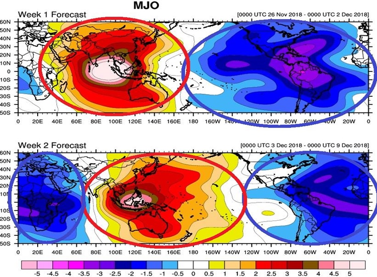 A citada onda planetária de energia, atingiu o Nordeste por volta do dia 22 de novembro e deve continuar provocando chuvas isoladas na região até próximo do dia 10 de dezembro, quando uma nova onda, agora com sinal negativo para chuvas deverá atingir o Nordeste.