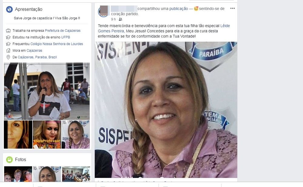 A ex-prefeita Denise Albuquerque (PSB) usou sua conta pessoal do Facebook para pedir oração para a professora.