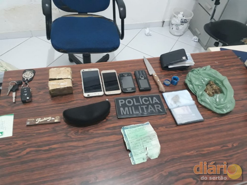 As guarnições se deslocaram até o local quando visualizaram os quatro no interior do carro, momento em que realizaram uma abordagem no quarteto e fizeram uma busca veicular encontrando com os suspeitos duas barras e várias porções de uma substância semelhante a maconha, totalizando 330 gramas.