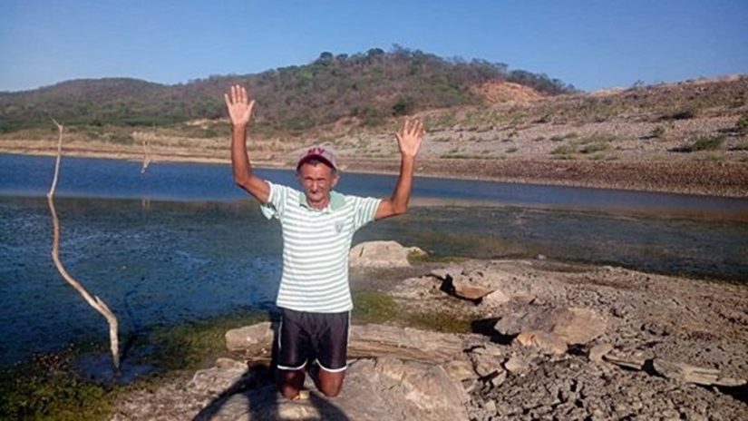 Com manancial que abastece três cidades seco, agricultor se ajoelha e clama a Deus por chuva no Sertão