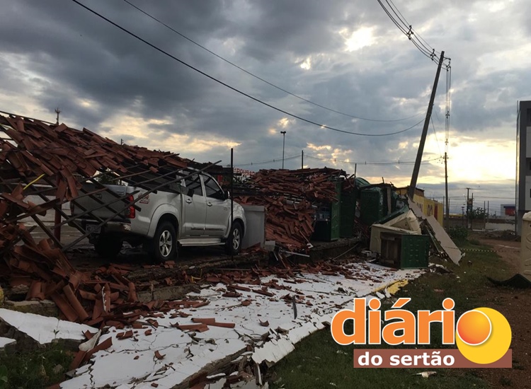 Fachadas de lojas, vitrines e telhados foram arrancados com a força do vento. Caixas de água também foram arremessadas de cima de algumas residências.