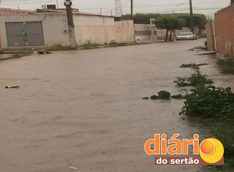 VÍDEO: Terceira maior chuva do ano em Sousa anima a população e deixa ruas e bairros alagados