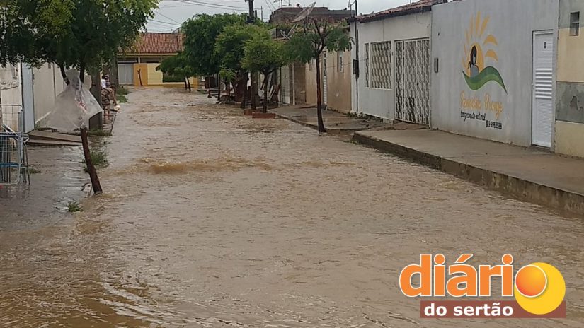 O bairro Raquel Gadelha, Dr Zezé e Zú Silva foram três dos mais afetados. As águas fizeram correnteza na porta das casas dos moradores.