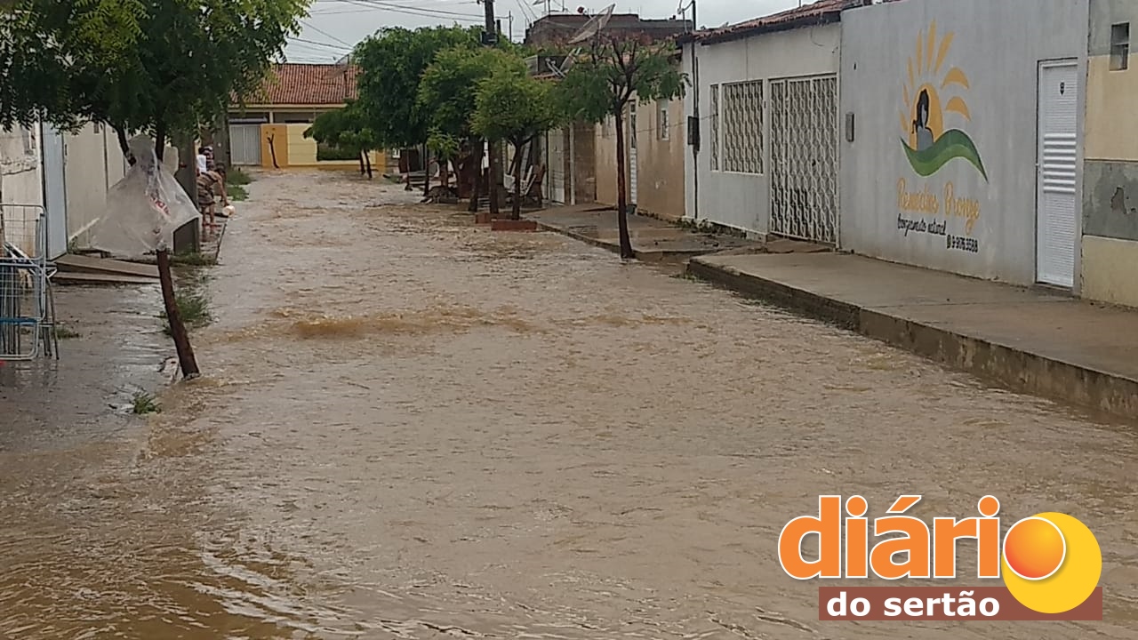 Ruas e avenidas viraram um verdadeiro rio em Sousa, Sertão do estado.