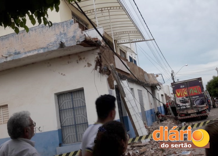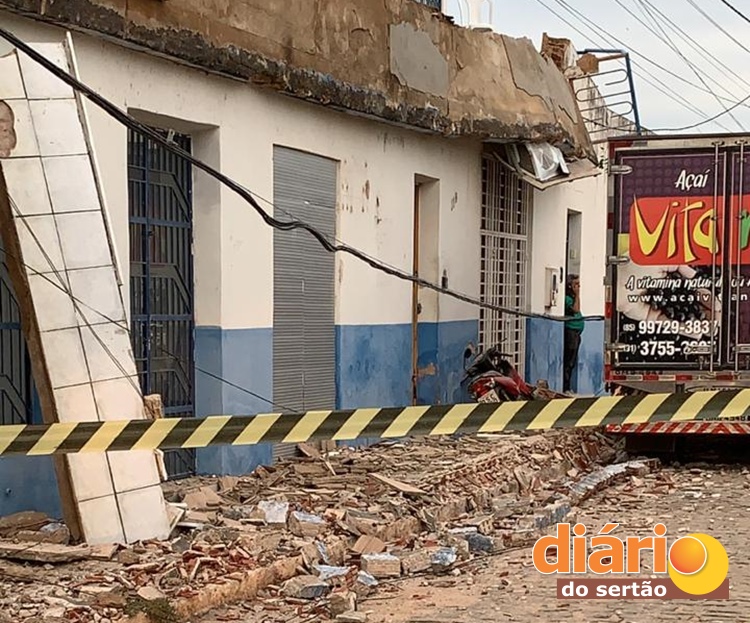 Parte da marquise do prédio desabou (foto: Diário do Sertão)