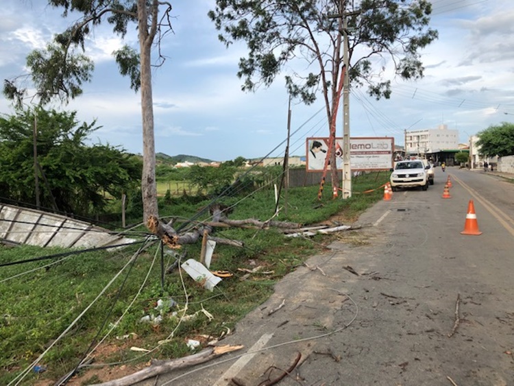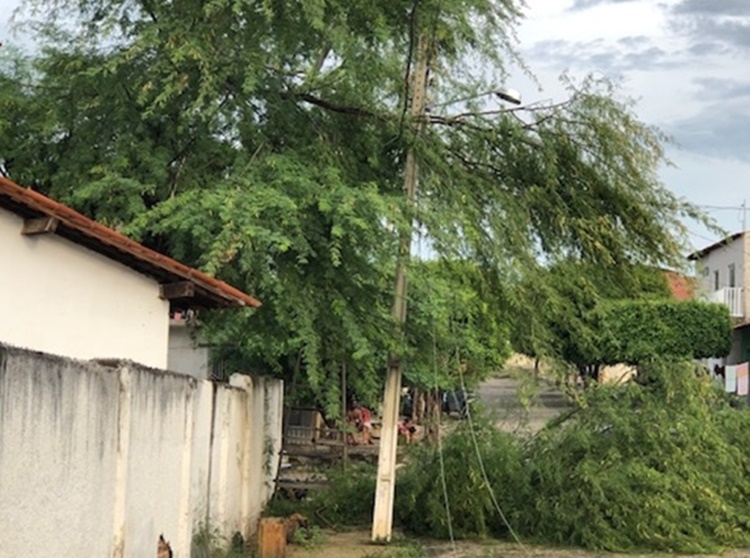 A ventania foi tão intensa que derrubou árvores em uma avenida na saída para Cajazeiras, interrompendo o fornecimento de energia em alguns pontos da cidade.