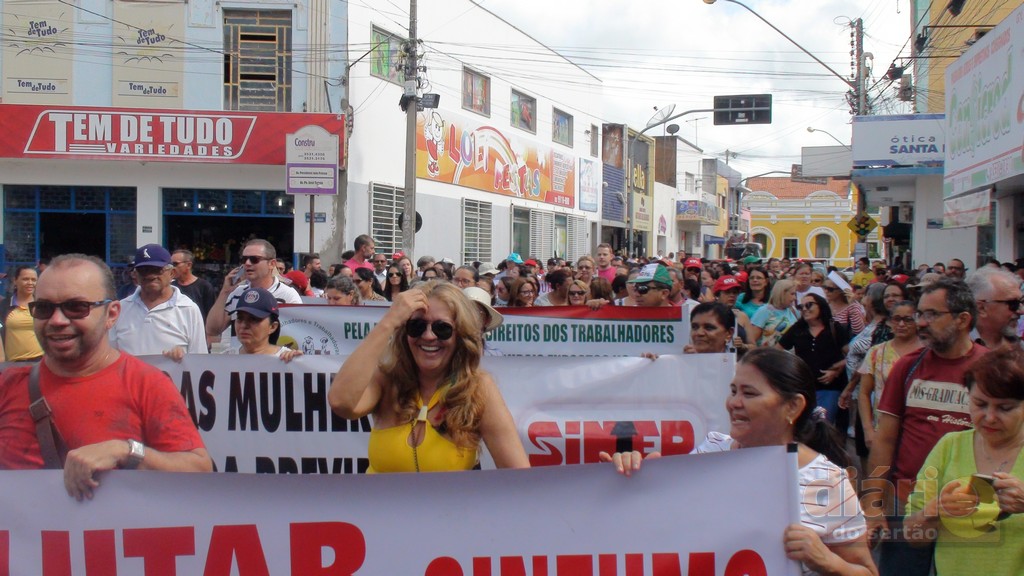 “Agora é uma hora de dizer não a tudo isso, a essa deforma [sic] que está aí, porque só nós somos capazes de salvar a nossa própria pele, de salvar a nossa aposentadoria, de salvar nosso direito de envelhecermos com dignidades”, diz a presidente do Sindicato dos Funcionários Municipais de Cajazeiras, Elinete Lourenço.