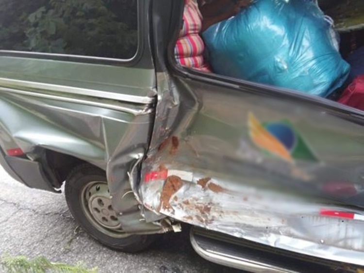 O veículo teve uma de suas portas completamente destruídas, com a força do impacto em que a pedra deslizou e rolou para a rodovia.