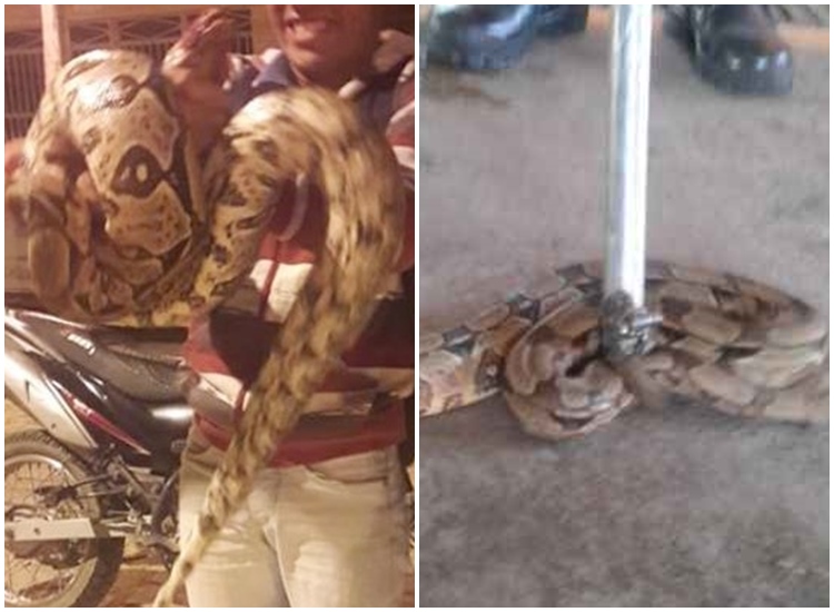 O animal do tipo jiboia foi encontrado próximo a zona rural da cidade. A cobra estava com vários ferimentos pelo seu corpo impossibilitando-a de se locomover.