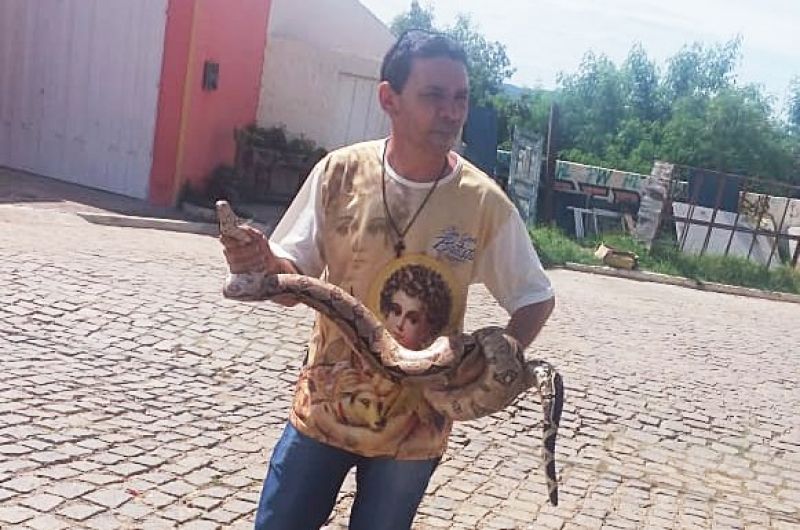 A cobra do tipo jiboia estava em uma Praça, em frente à Igreja de Nossa Senhora Sant’Ana, assustando a população que transitava pelo local. Corajoso, Luiz Nascimento se aproximou do animal e o capturou.
