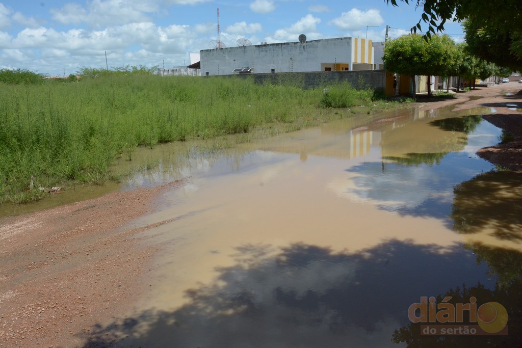 As imagens da TV Diário do Sertão mostram a rua alagada após uma chuva que caiu na noite anterior. Segundo os moradores, a situação é caótica porque, além da falta de acessibilidade pela rua, a água da chuva traz animais peçonhentos e risco de doenças.