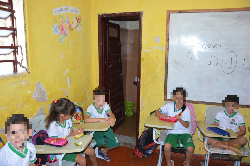 As imagens mostram vazamentos e infiltrações por todos os lados; problemas elétricos que colocam em risco a vida dos alunos; salas que não comportam o número de estudantes e o pior: banheiros dentro da própria sala de aula.