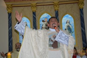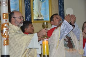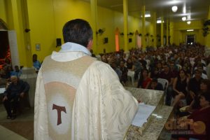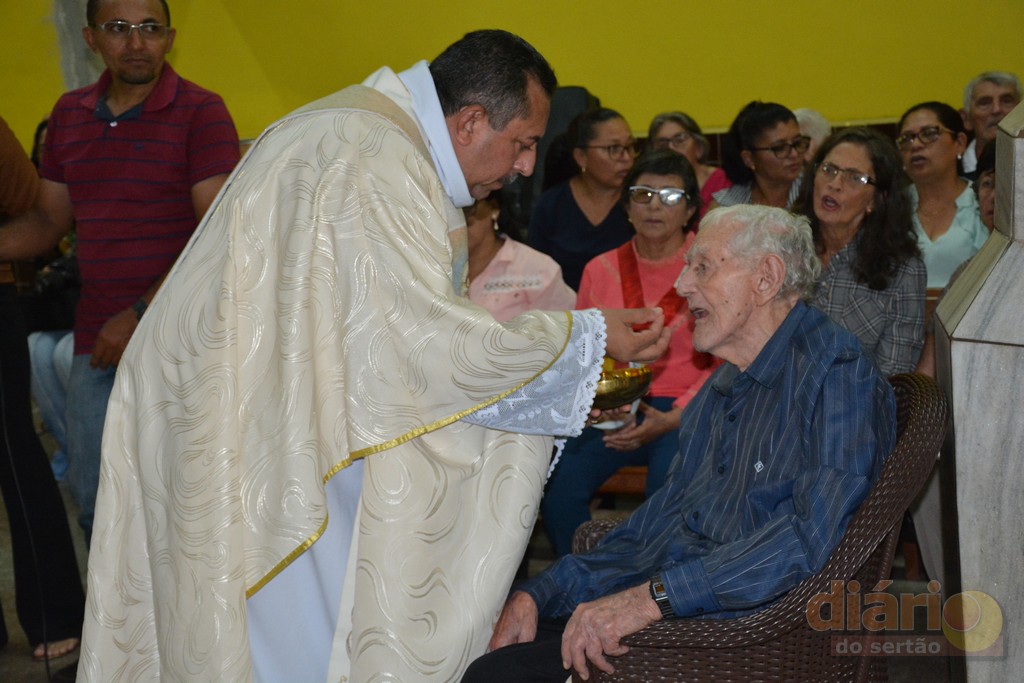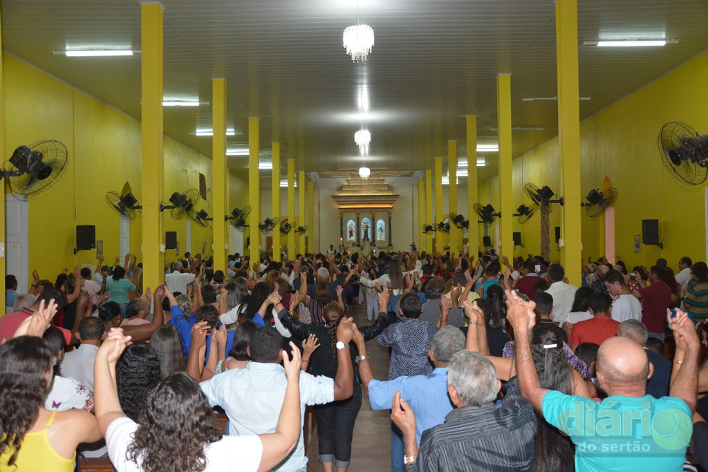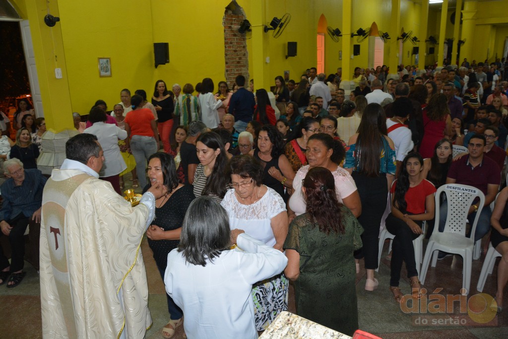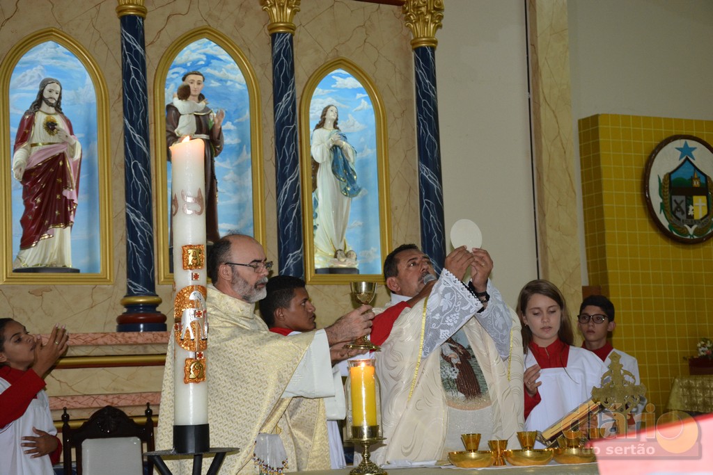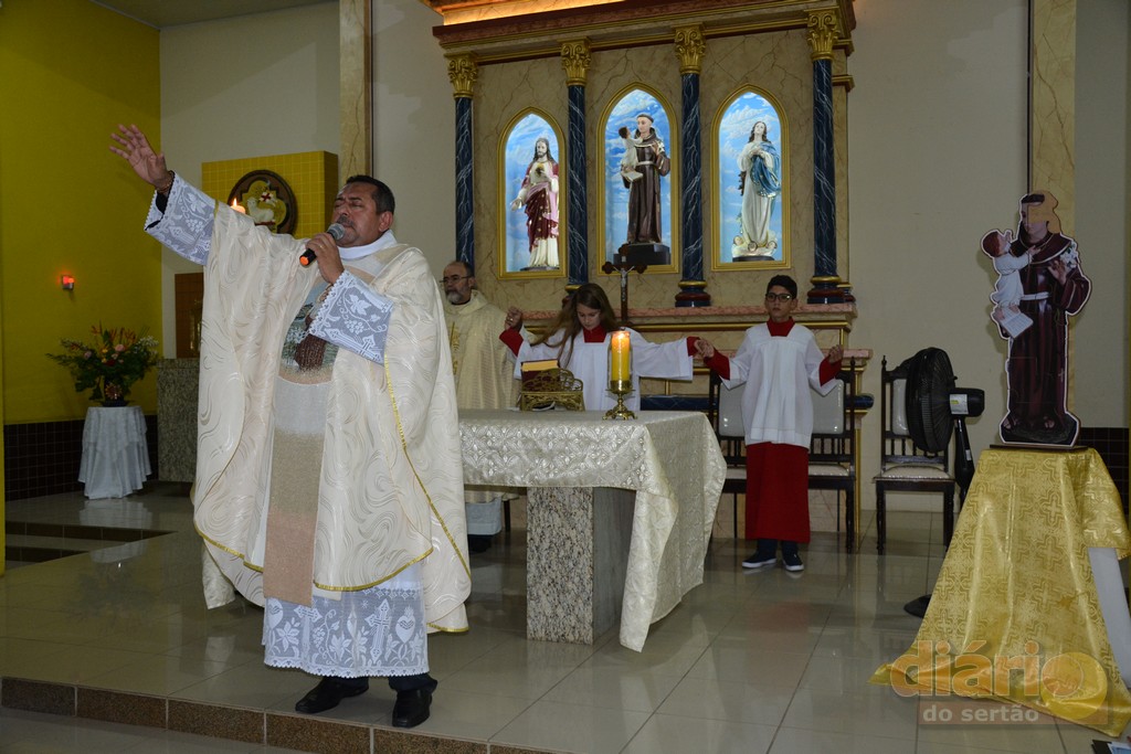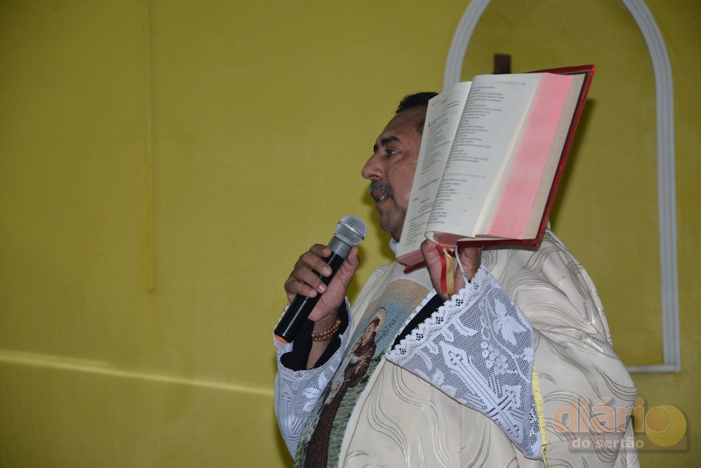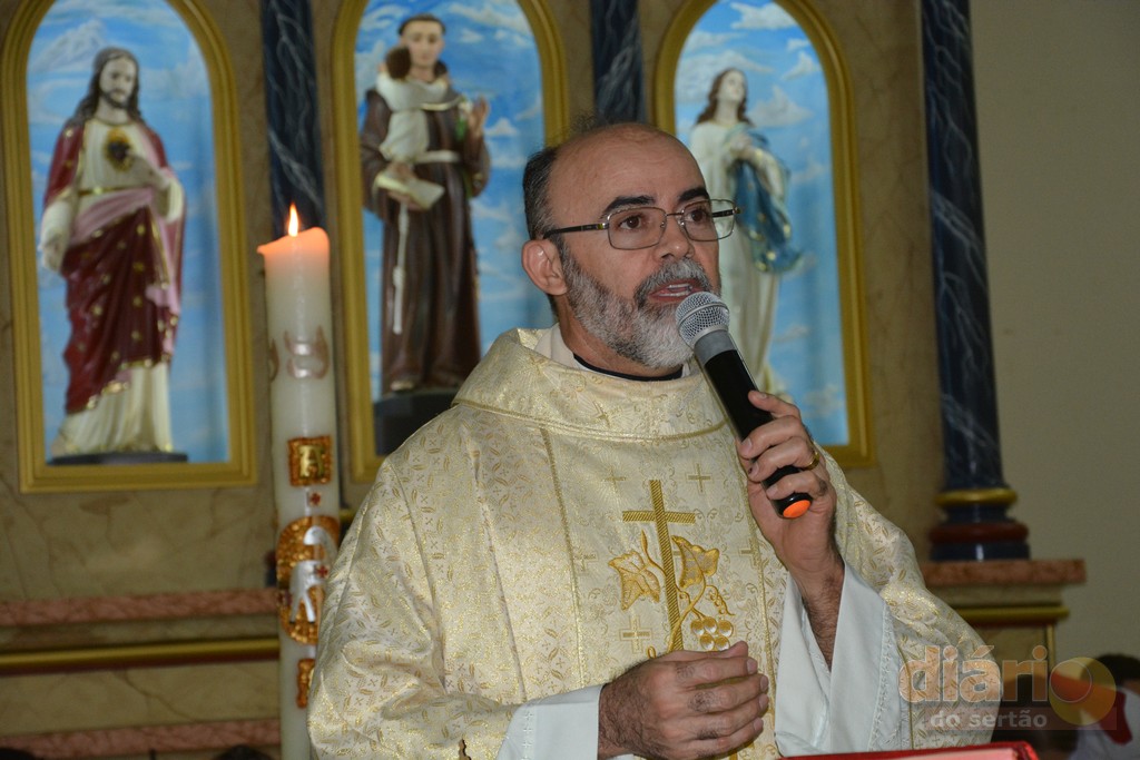 A missa solene da noite dessa quarta-feira (12) foi celebrada pelo padre Antônio Furtado, que é natural de Bonito de Santa Fé e que foi ordenado em 2004 na Diocese de Fortaleza, e há quase 30 anos é consagrado na Comunidade Católica Shalom.