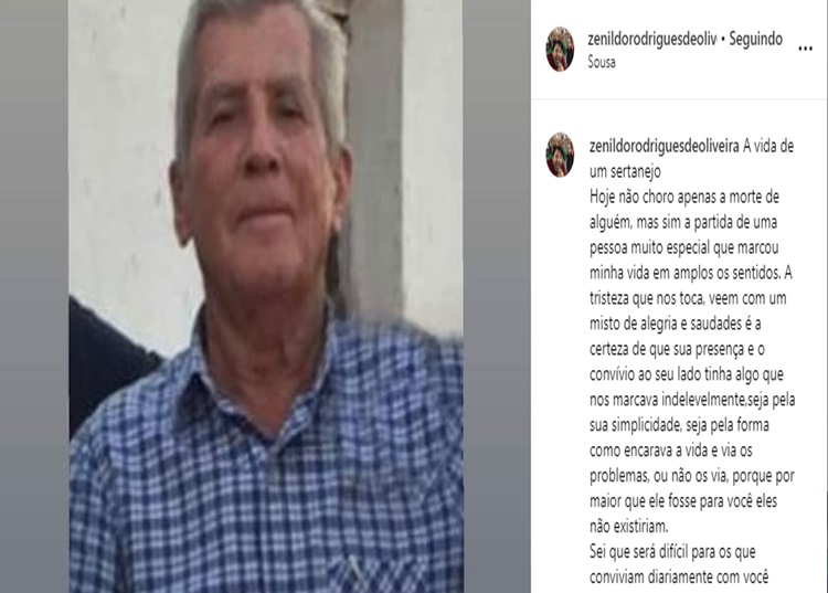 O vice-prefeito da cidade de Sousa, Sertão do estado, Zenildo Oliveira (PSD), publicou nesta terça-feira (19) uma homenagem ao senhor Joselito Cassimiro de Oliveira, pai do prefeito Fábio Tyrone, que acabou falecendo na tarde de ontem.