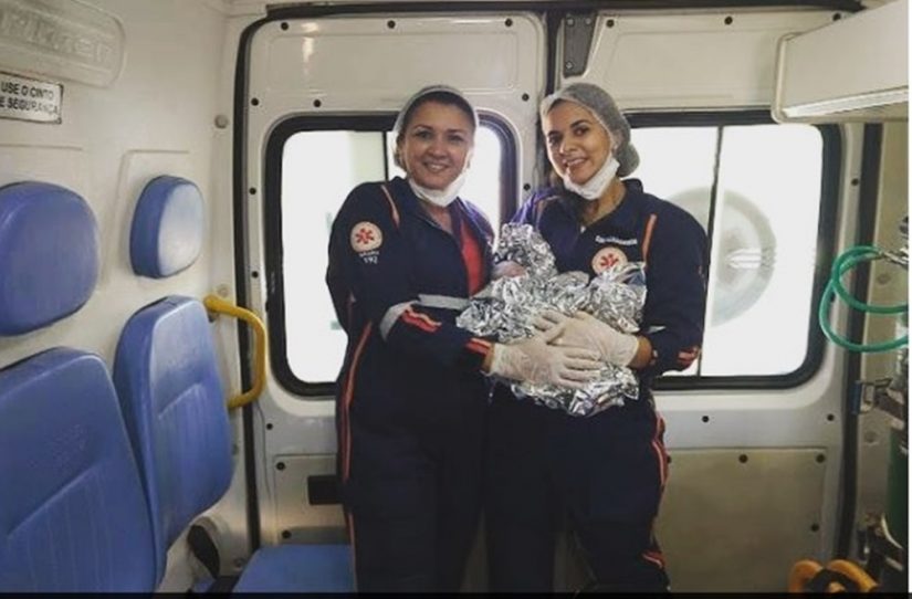 As enfermeiras auxiliaram no parto de uma mulher dentro da ambulância do Serviço de Atendimento Móvel de Urgência.