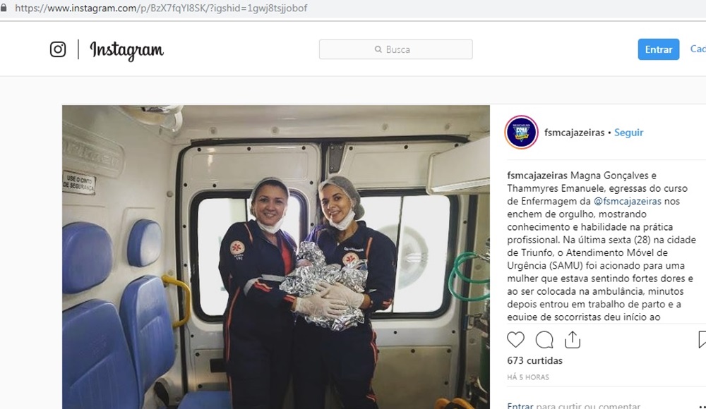“Magna Gonçalves e Thammyres Emanuele, egressas do curso de Enfermagem da @fsmcajazeiras nos enchem de orgulho, mostrando conhecimento e habilidade na prática profissional”, postou a faculdade
