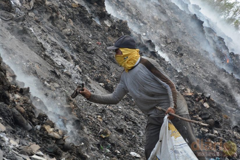 “Muitos ficam catando latinhas no meio, mas prejudica a saúde, e fica ruim quando o lixo está pegando fogo, principalmente para nós que trabalhamos aqui”, disse o catador Cristiano Silva.