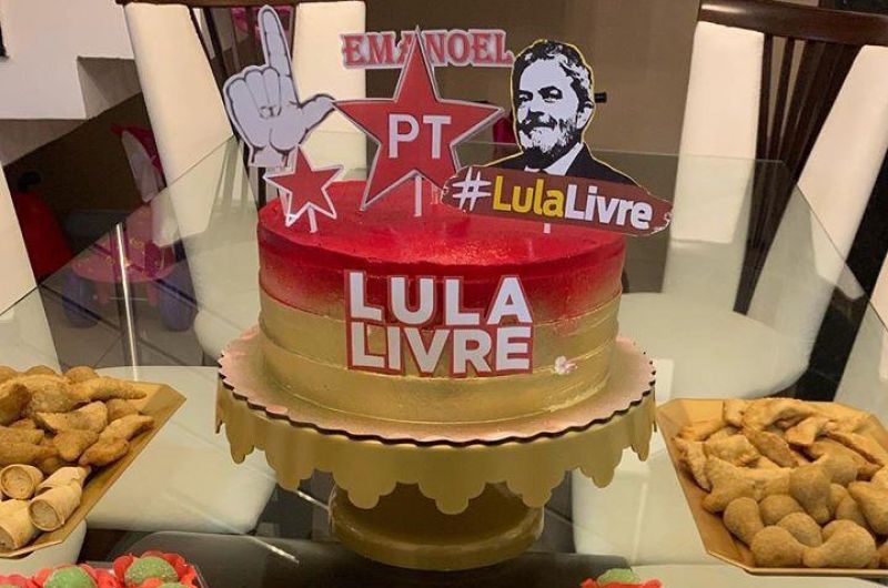 Com direito a bolo e camisa personalizada, Emanoel usou como tema do seu aniversário, a “Movimento Lula Livre”.
