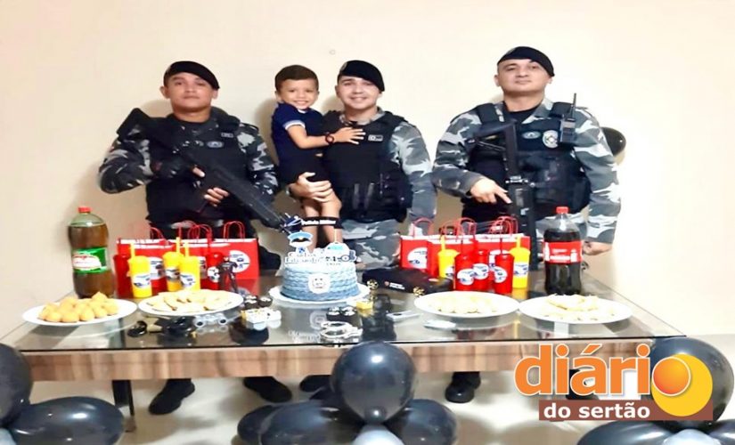 Garotinho que sonha em ser PM, recebe visita de militares em seu aniversário de 4 anos em Sousa