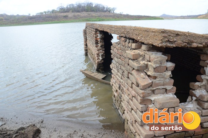 Diante do cenário do baixo volume do manancial, a reportagem do Diário do Sertão constatou uma construção da época da construção do açude. Trata-se de uma casa com uma laje que antes era submersa devido às aguas do açude. De acordo com informações, o lugar serviu de casa de força e local para armazenar material para construção do açude.