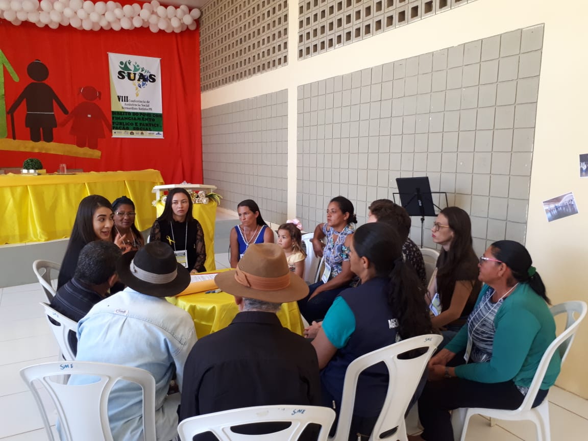A Prefeitura municipal de Bernardino Batista, através da Secretaria de Assistência Social e cidadania juntamente ao Conselho Municipal de Assistência Social, realizou nessa sexta-feira (27), a sua 8º Conferência Municipal da Assistência Social com o tema Assistência Social: um direito do povo com financiamento público e direito social como uma forma de protesto e resistência à regressões. Na programação esteve a divisão dos três eixos temáticos: Assistência Social: direito do povo; Financiamento Público e SUAS com participação social a serem levados para a edição estadual e a escolha dos delegados e suplentes. O evento aconteceu no auditório da secretaria municipal de Educação e contou com a participação de representantes do poder executivo, legislativo e sociedade civil.
